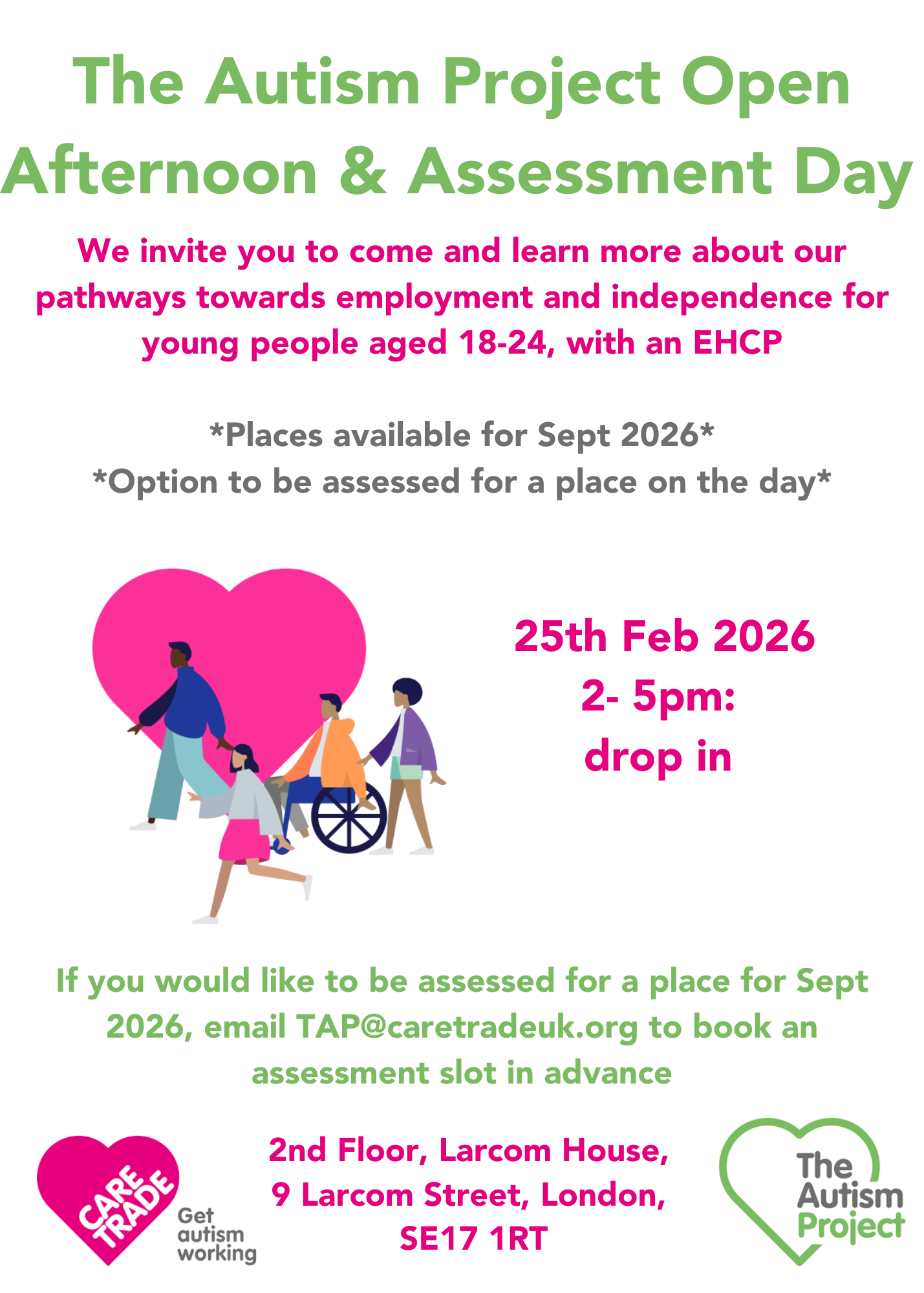 We have an Open Afternoon & Assessment Day- see flyer attached- 25th Feb 2-5pm drop in at our centre Larcom House, SE17 1RT